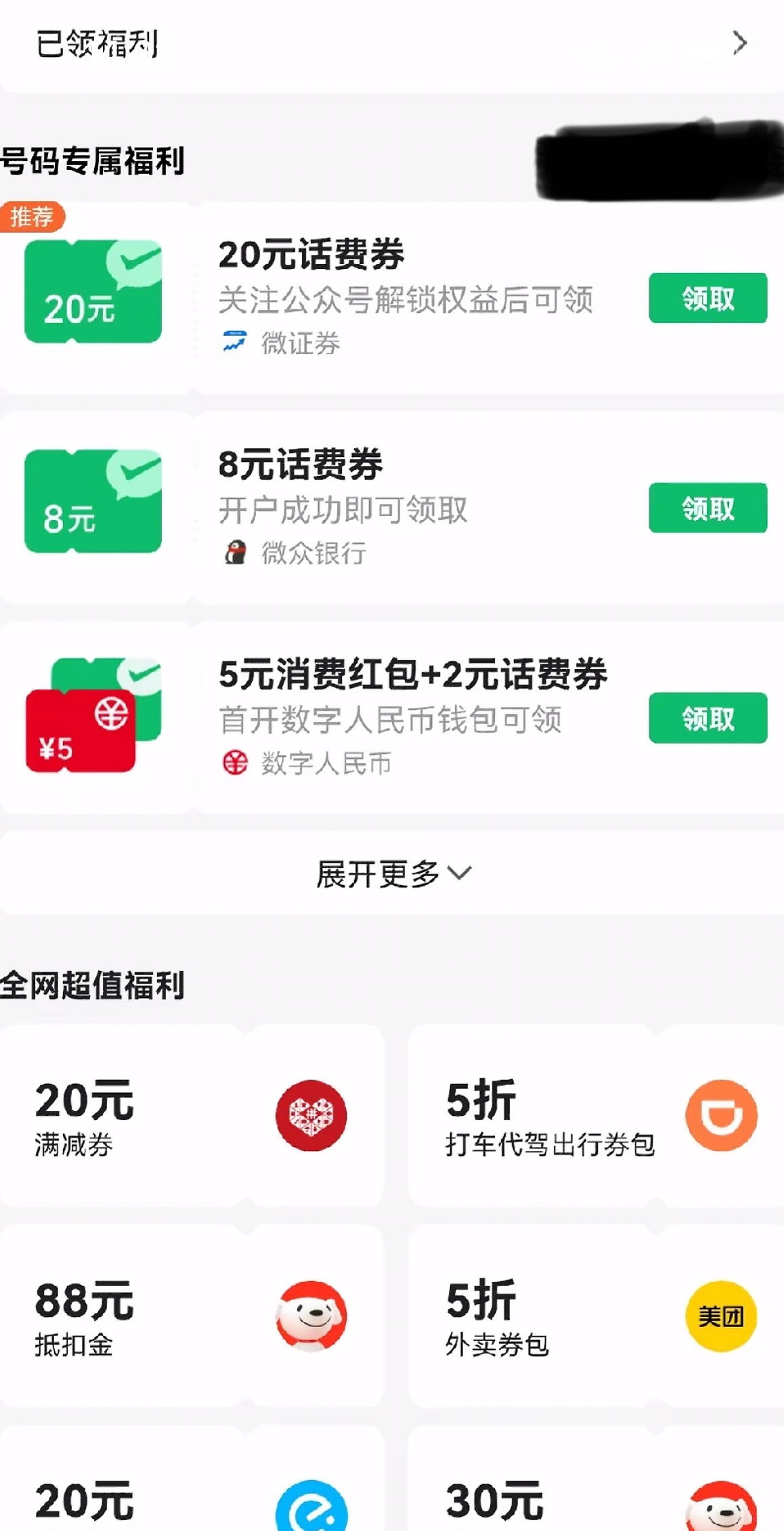 微信打开点 手机充值 进去然后在点左上角的 领话费卷 跟着步骤 开通个微证劵 几分钟就能开通好 就能领了