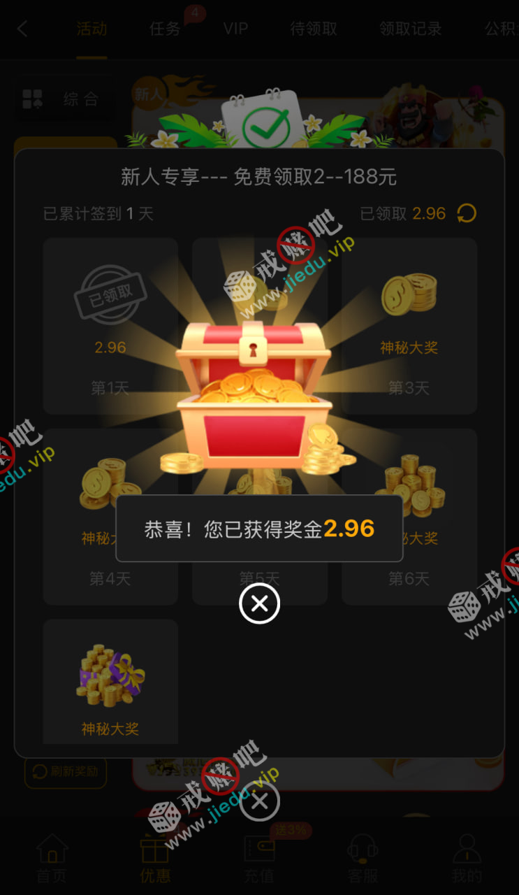到账情况: 白嫖即可(勿充值)