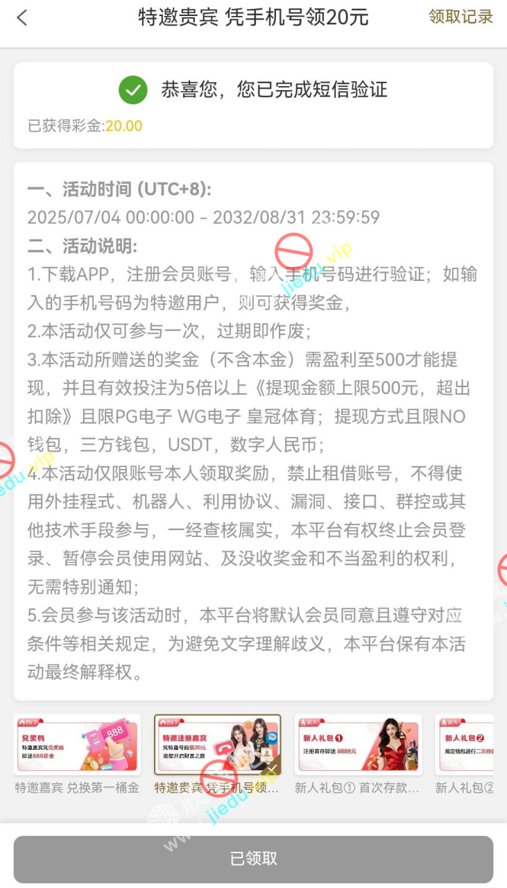 到账情况: 白嫖即可(勿充值)