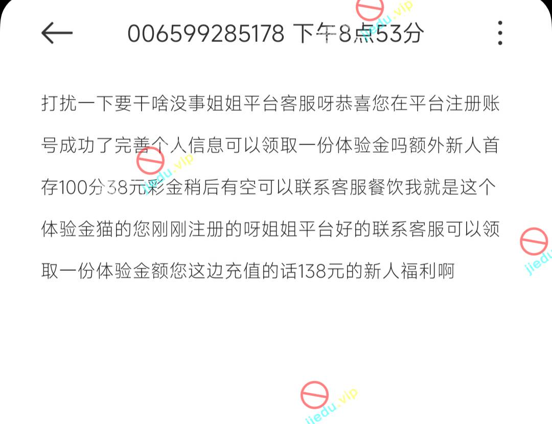 应该是个黄播,姐姐平台谁知道的,打电话说送体验金,但是没说网址,