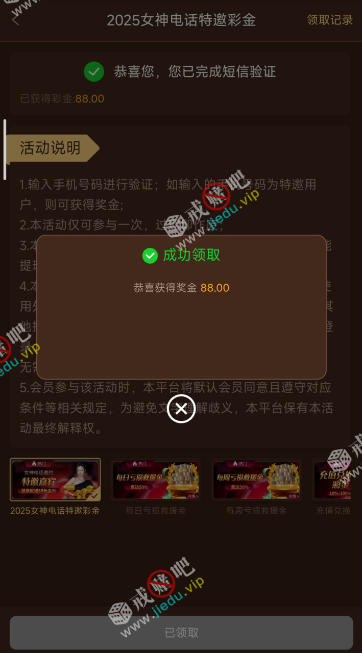 之前领过的老哥就没有机会了,没有领到的没碰到的还可以去碰,只能参与一次的,我领到了 88。