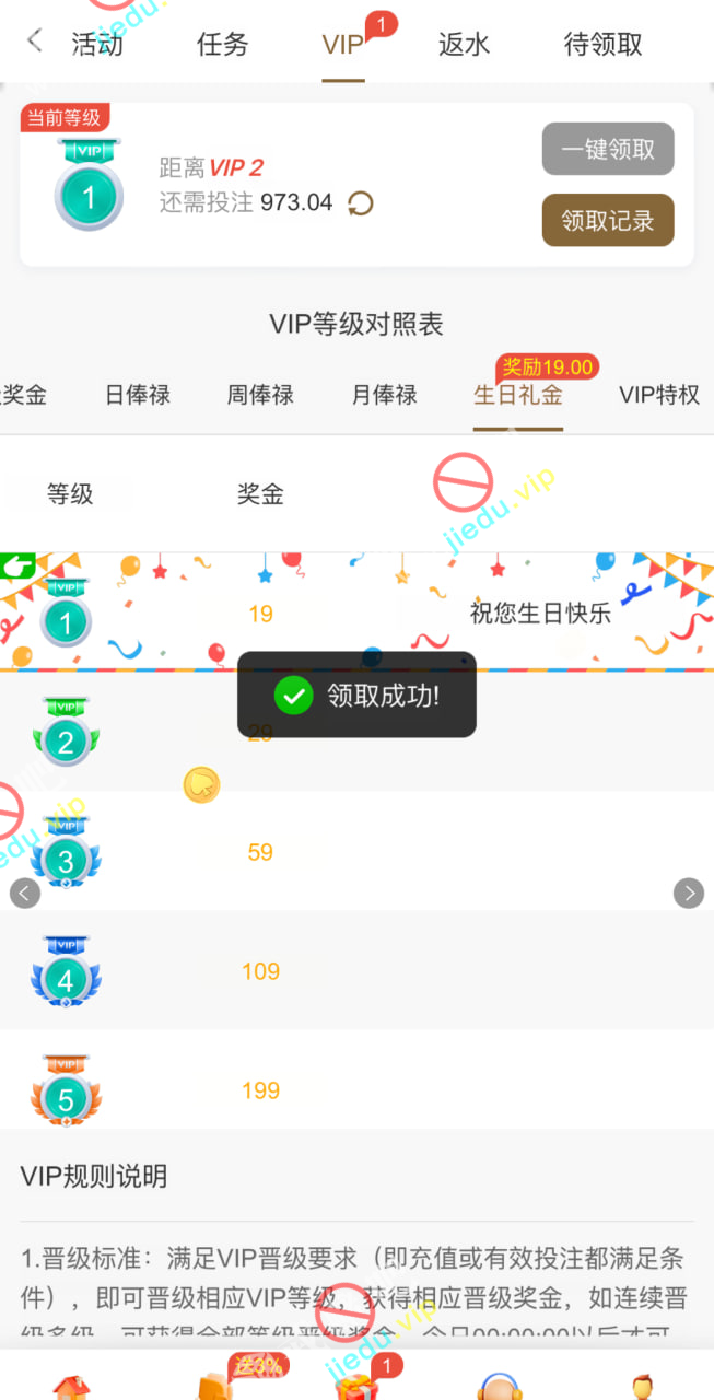 玩过的有v1就能领,在设置里面设置生日日期,设置成 19 号,明天就能领了,我昨天设置的今天领到了。