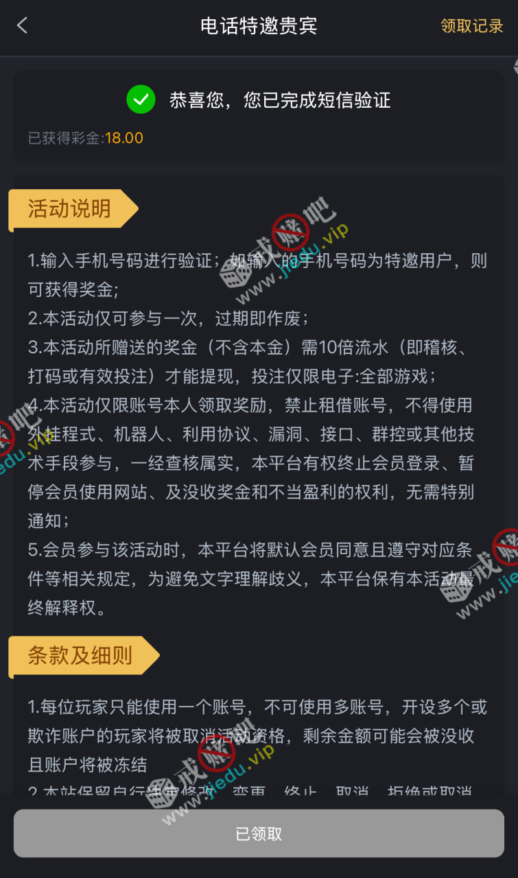 到账情况: 白嫖即可(勿充值)