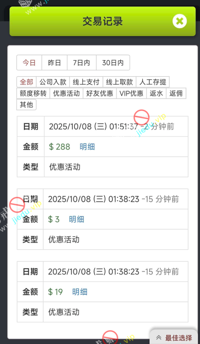 节日那天我没有领到那么多的彩金,但是今天接到电话送了 288 的回访彩金,老哥们老号老用户就去看看。