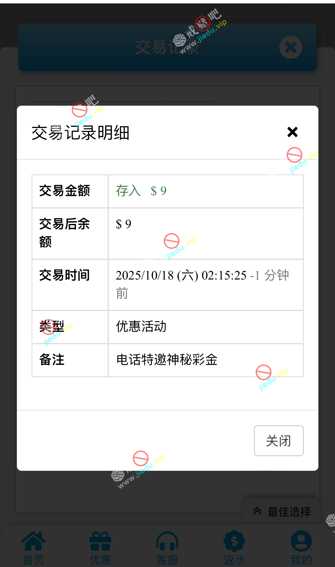 就是被接到电话,送了 9 块的神秘礼金,登录看看。
