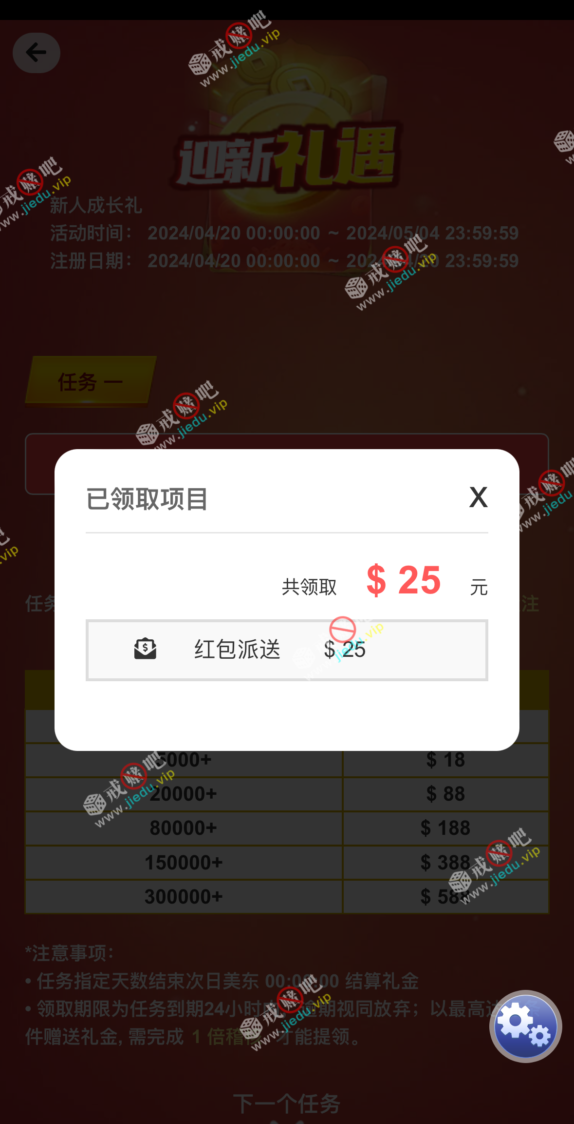 到账情况: 白嫖即可(勿充值)