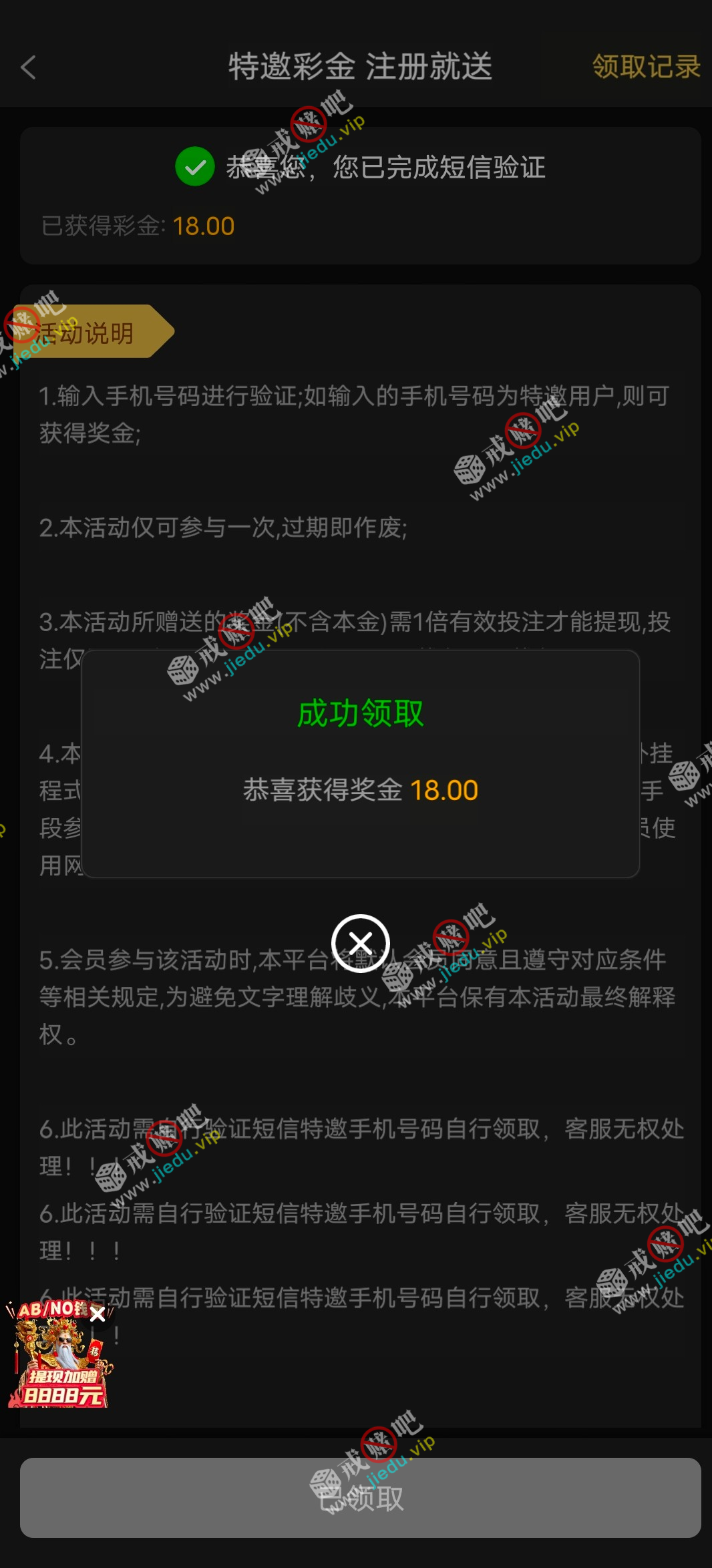 到账情况: 白嫖即可(勿充值)