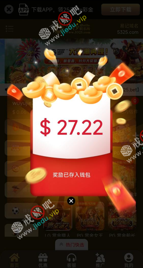3点 21点 23点红包,今天大水抢了27,有账号的各位赌神别错过了哈。
