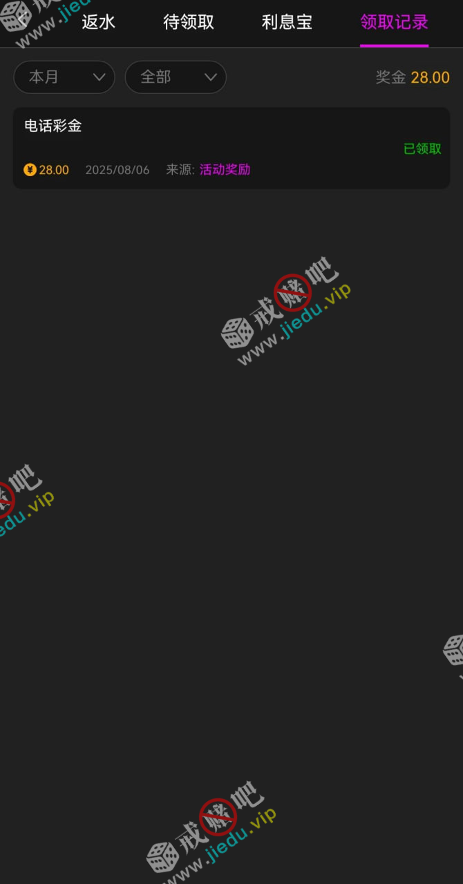 哎呦,有领到了电话彩金,好像一个月一次给的,有漏接电话就可以找客服碰碰或者登录上号看看。