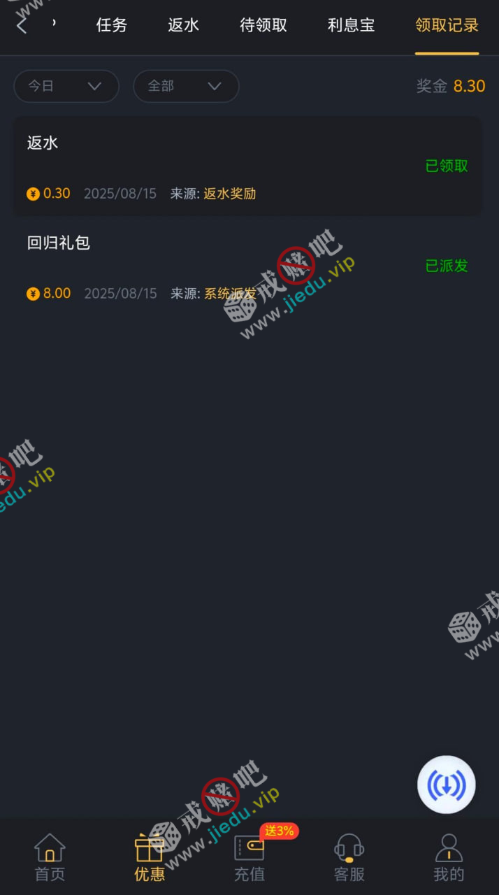 到账情况: 白嫖即可(勿充值)