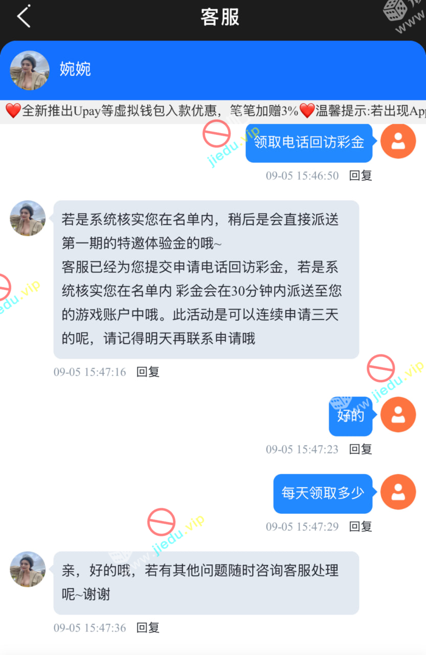 找客服碰瓷电话回访彩金,在名单内的就送了,随机金额的,不满足也得满足了。