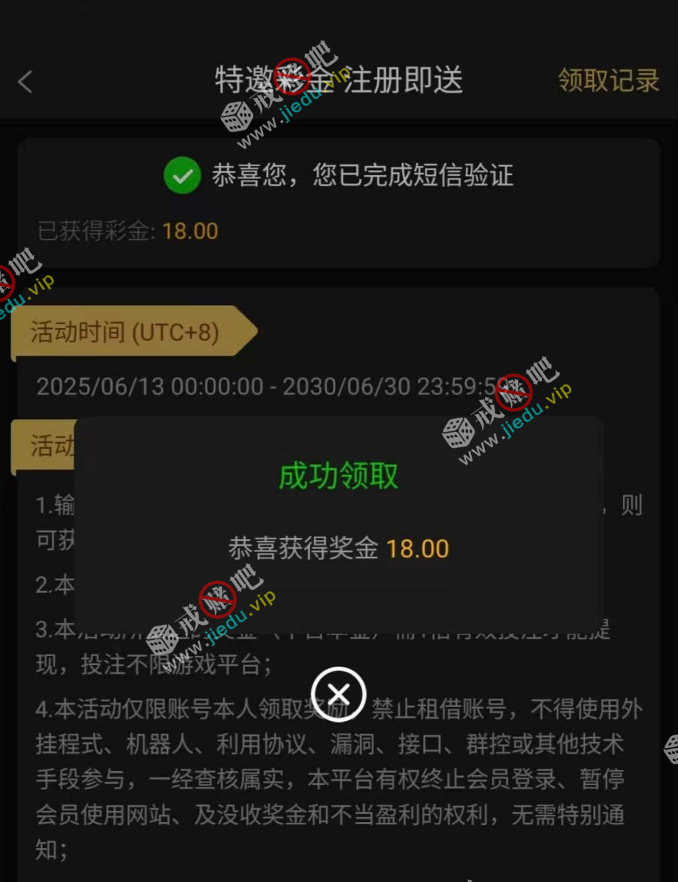 到账情况: 白嫖即可(勿充值)