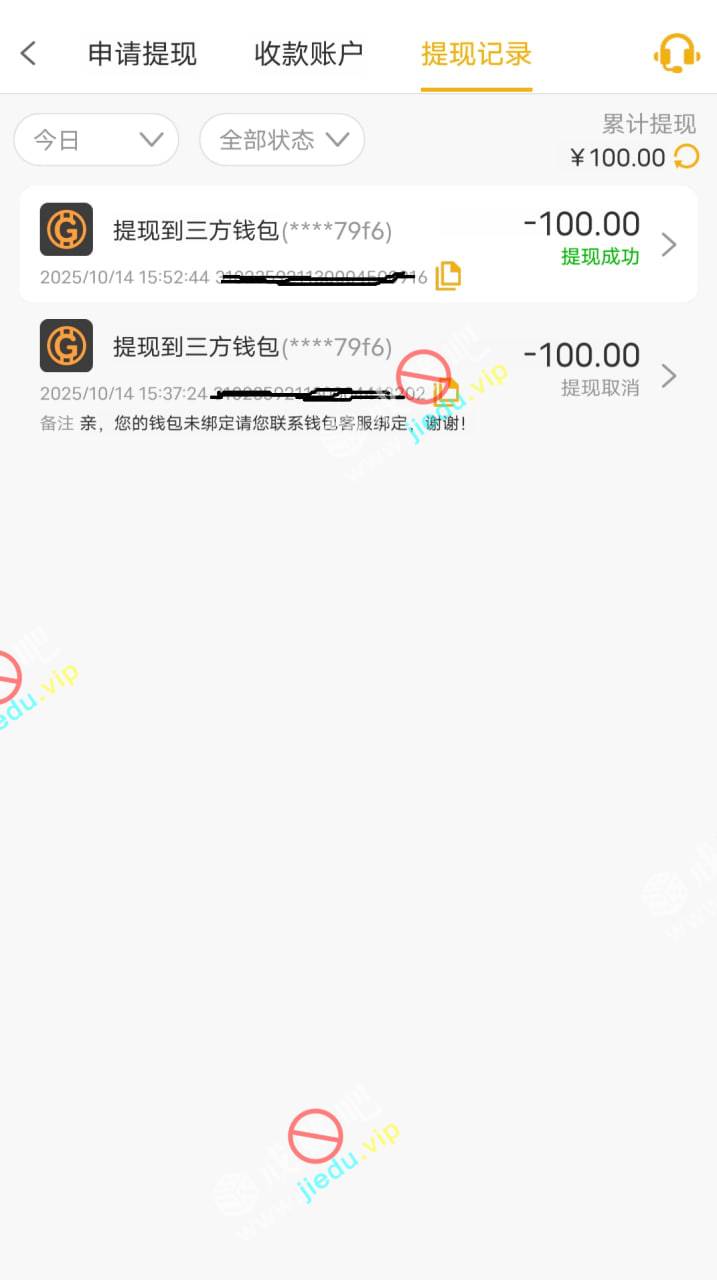 我是接到电话的,提了一百已到账。