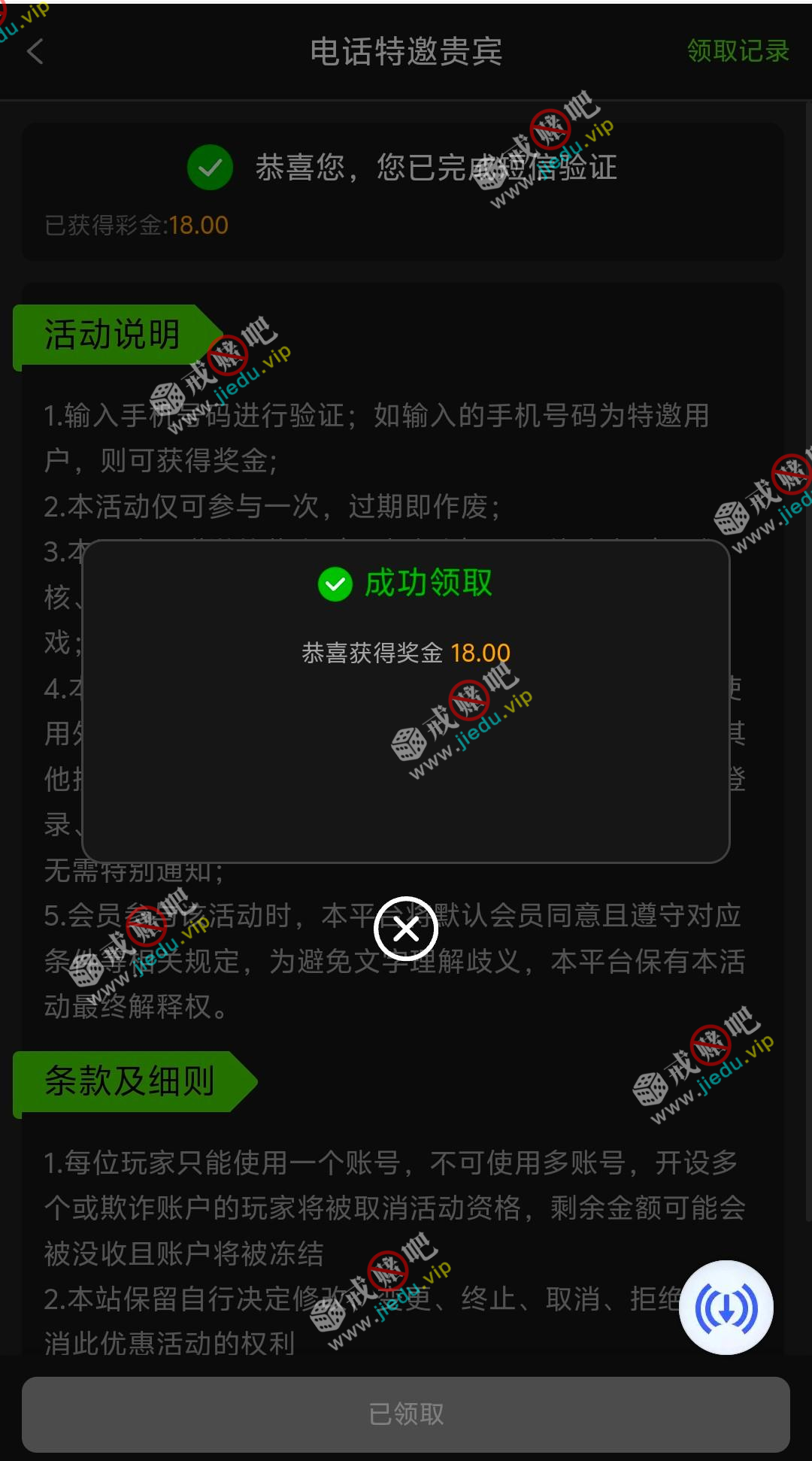 到账情况: 白嫖即可(勿充值)