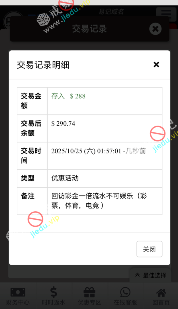 这个是第一次的回访彩金 288,我注册才有 2个月左右,有号的去看看 。